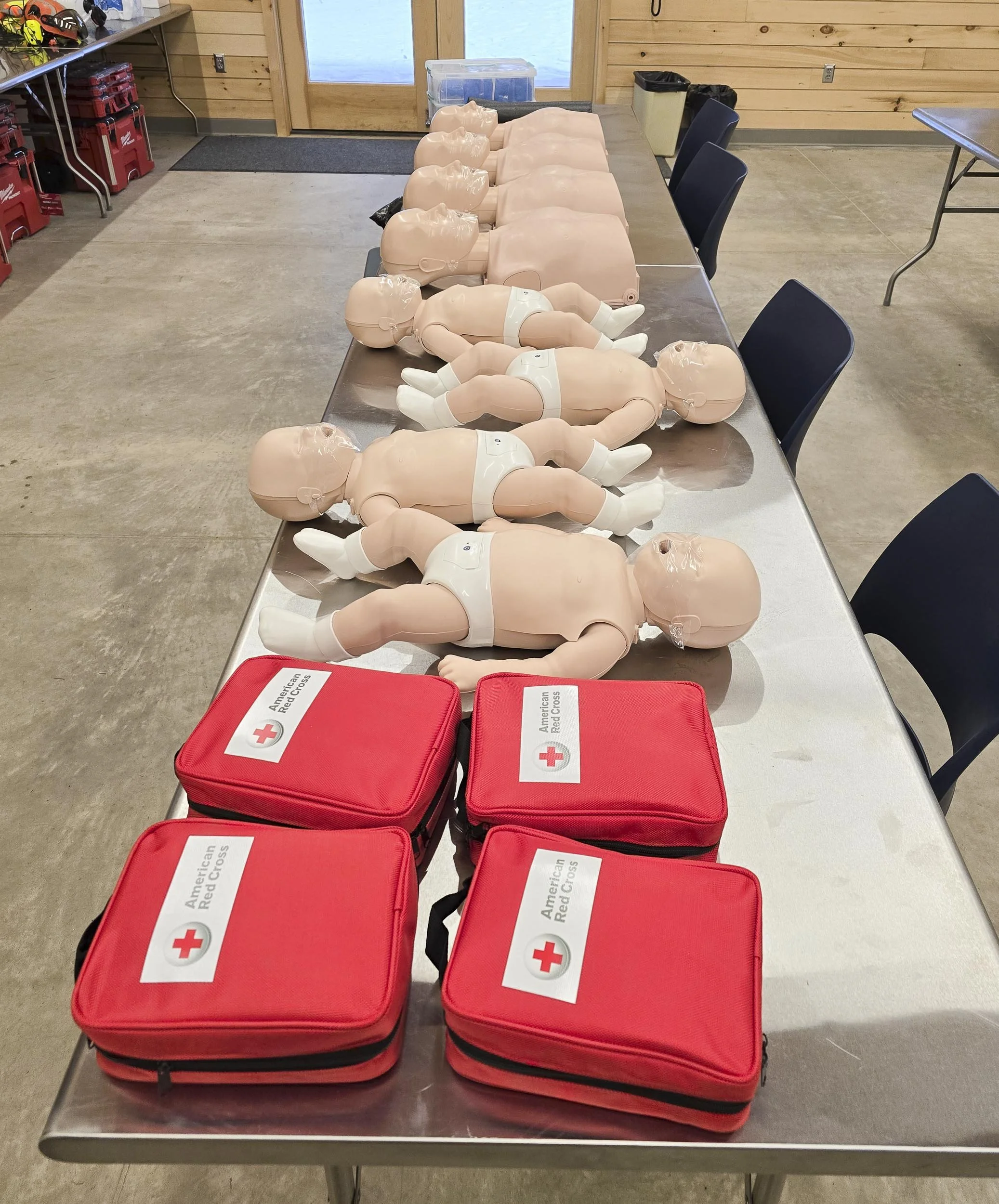 We teach First Aid/CPR/AED classes to Red Cross specifications. Participants learn how to recognize and respond to cardiac, breathing, and first aid emergencies in adults (12 years +). The curriculum addresses CPR/AED usage and treating sudden illnesses/injuries like choking and cuts. Completion results in a 2-year certification that meets OSHA standards.